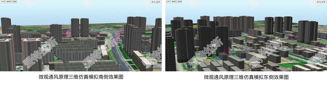北京市中心城區通風(fēng)廊道展示系統三維仿真模擬子系統的關(guān)鍵技術(shù)在于根據空氣動(dòng)力學(xué)原理,利用C語(yǔ)言實(shí)現科學(xué)地微觀(guān)通風(fēng)原理展示,并實(shí)現了三種經(jīng)驗效果的對比:①與風(fēng)向平行的建筑較有夾角的建筑通風(fēng)效果好;②低矮建筑較高大建筑通風(fēng)效果好;③空曠區域較密集區域通風(fēng)效果好。其創(chuàng )新之處在于利用真實(shí)的測驗數據和科學(xué)的動(dòng)力學(xué)原理進(jìn)行模擬,為北京市中心城區通風(fēng)廊道展示系統的科學(xué)性打下堅實(shí)基礎。