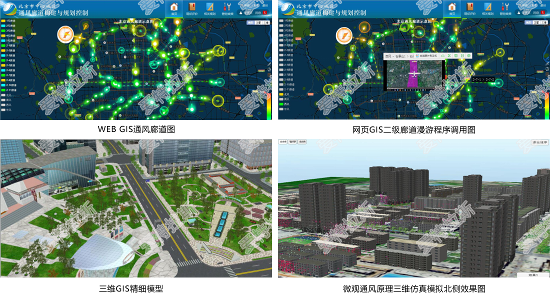 北京市中心城區通風(fēng)廊道展示系統三維GIS子系統中的關(guān)鍵技術(shù)在于北京市精細三維模型構建和通風(fēng)廊道宏觀(guān)漫游效果,這些功能通過(guò)Skyline軟件操作完成;在三維GIS方面,大部分公司都只是做到了部分三維或者2.5維,并非完全的三維視景,與傳統的三維GIS相比,其創(chuàng )新之處在于完全三維化,并可在三維境況下實(shí)現所需的空間分析。