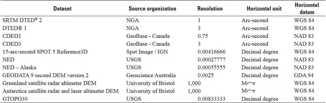 全球DEM數據從1988開(kāi)始,經(jīng)過(guò)30余年的發(fā)展,在生產(chǎn)方法、數據處理技術(shù)、分辨率、精度、應用領(lǐng)域與市場(chǎng)等多個(gè)方面都有了長(cháng)足發(fā)展。