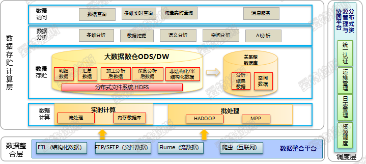 包括按照測繪地理信息標準規范生產(chǎn)的大量空間數據,如 DLG、 DOM 、DEM 、 DRG,也包括更大體量的自發(fā)的數據,如文字、圖片、語(yǔ)音、視頻等,既有實(shí)體空間中的數據,也有虛擬空間中的數據。時(shí)空大數據作為最重要的大數據,除了具有大數據的一般特征外,還有其自身的特殊性。平臺主要具有以下特點(diǎn):