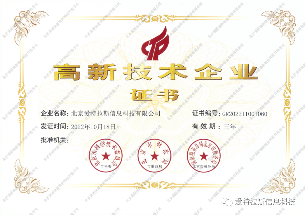 再次獲得國家級高新技術(shù)企業(yè)認證及中關(guān)村高新企業(yè)認證。