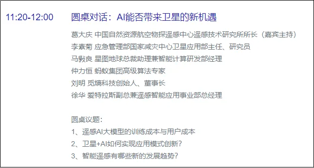 于5月16日11:20-12:00,我司副總兼遙感智能應用事業(yè)部總經(jīng)理徐華參加“AI能否帶來(lái)衛星的新機遇”圓桌對話(huà),探討遙感AI大模型的應用模式創(chuàng )新和發(fā)展趨勢,望廣大新老朋友聆聽(tīng)。