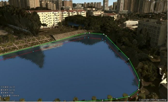 產(chǎn)品支持將 BIM 數據與水面數據進(jìn)行融合。針對水面數據,產(chǎn)品支持創(chuàng )建水面符號,支持設置水波大小、水面顏色等參數,可制作出具有實(shí)時(shí)倒影、動(dòng)態(tài)波紋的水面符號。